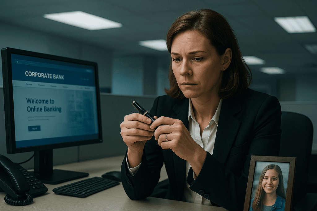 Los dedos tamborilean sobre el escritorio, ordenado con exactitud quirúrgica: pantalla, teclado, ratón, teléfono, un cubilete con bolígrafo y lápiz que nunca usa —ella siempre fue de pluma—, y una fotografía enmarcada de su hija, que sonríe desde otra realidad.