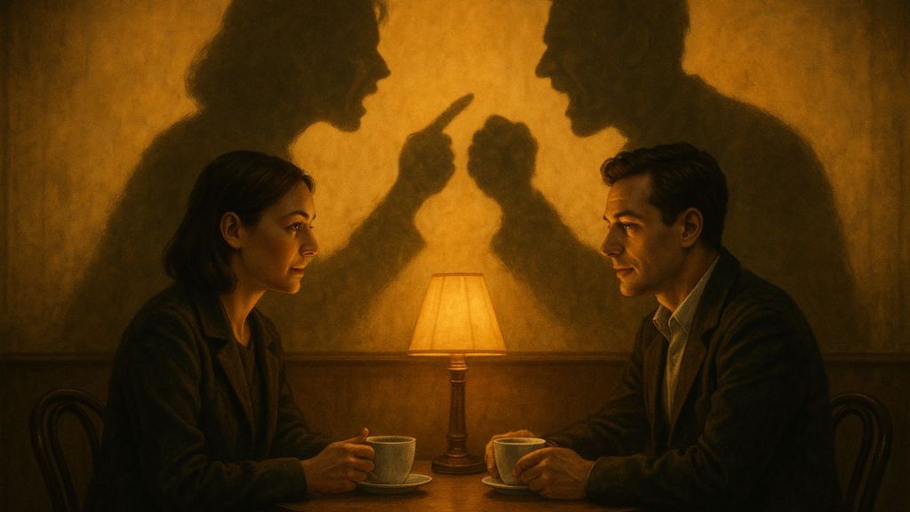 - Una conversación de posguerra donde los silencios hablan más que las palabras.